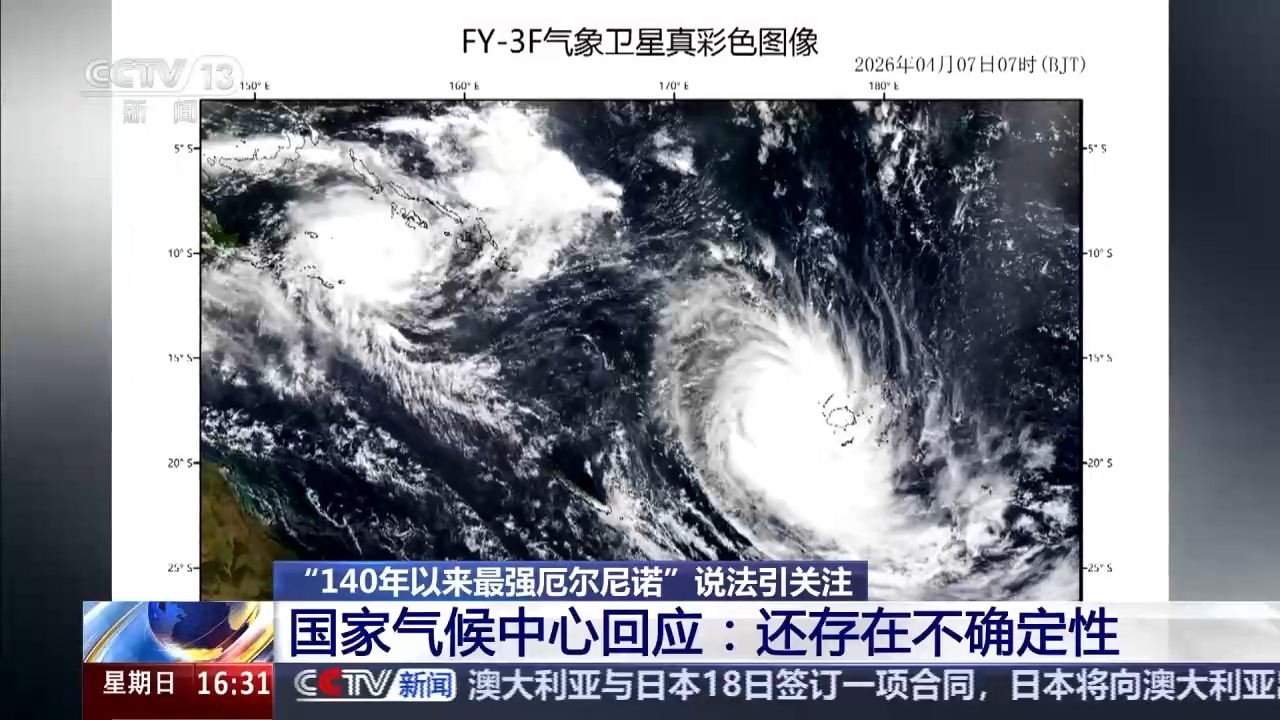 国家气候中心首席预报员 陈丽娟:根据国家标准,厄尔尼诺事件强度,是以事件在峰值的指数值来确定,当指数在0.5℃到1.3℃之间,称为弱事件;在1.3℃到2.0℃之间,称为中等事件;大于2.0℃就定义为强事件;如果这个强事件大于2.5℃的时候,就定义为超强事件。今年预计要发生的厄尔尼诺事件,是否达到超强事件标准,还存在不确定性。