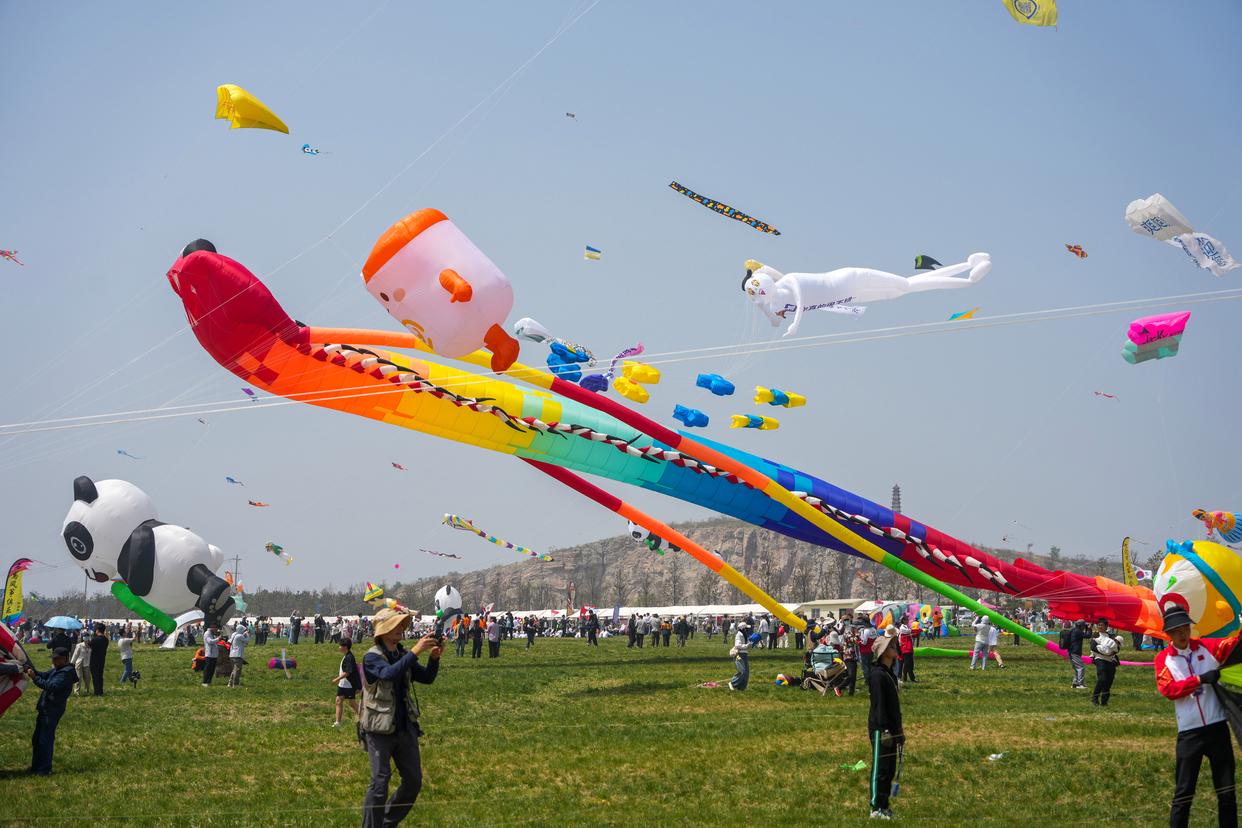 4月15日,前来参会的全球风筝选手参与了“拥抱和平”签名活动。龙头蜈蚣风筝承载着吉祥顺遂、国泰民安的美好寓意,是潍坊非遗经典。各国风筝运动员在风筝上亲笔签名,以风筝长线为纽带,共绘和平画卷。
