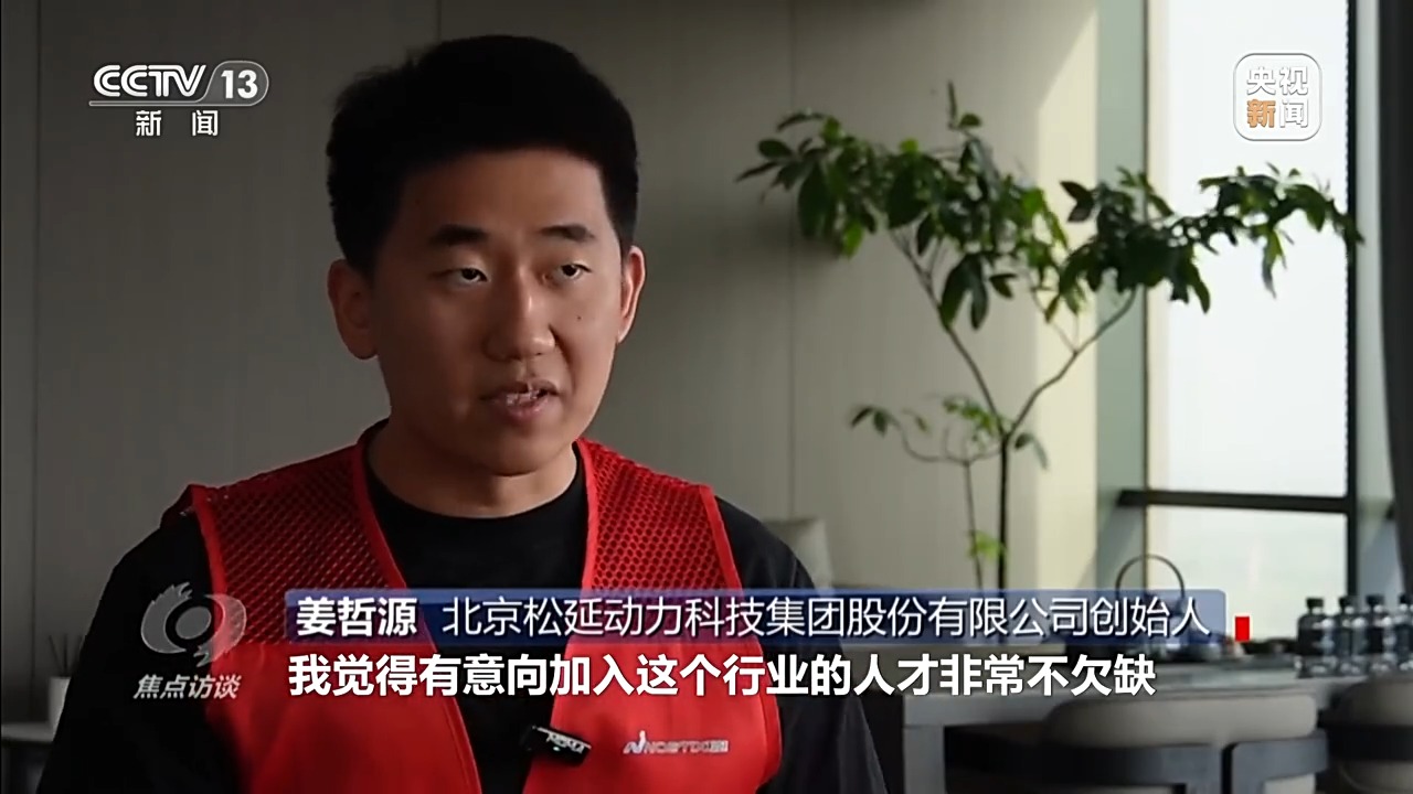 北京松延动力科技集团股份有限公司创始人 姜哲源:我觉得有意向加入这个行业的人才非常不欠缺,有相关经验的人才超级稀缺。我们做了很多努力,把很多希望加入人形机器人行业但是在别的行业的人吸纳过来,再把他培养成合格的优秀的人形机器人工程师。