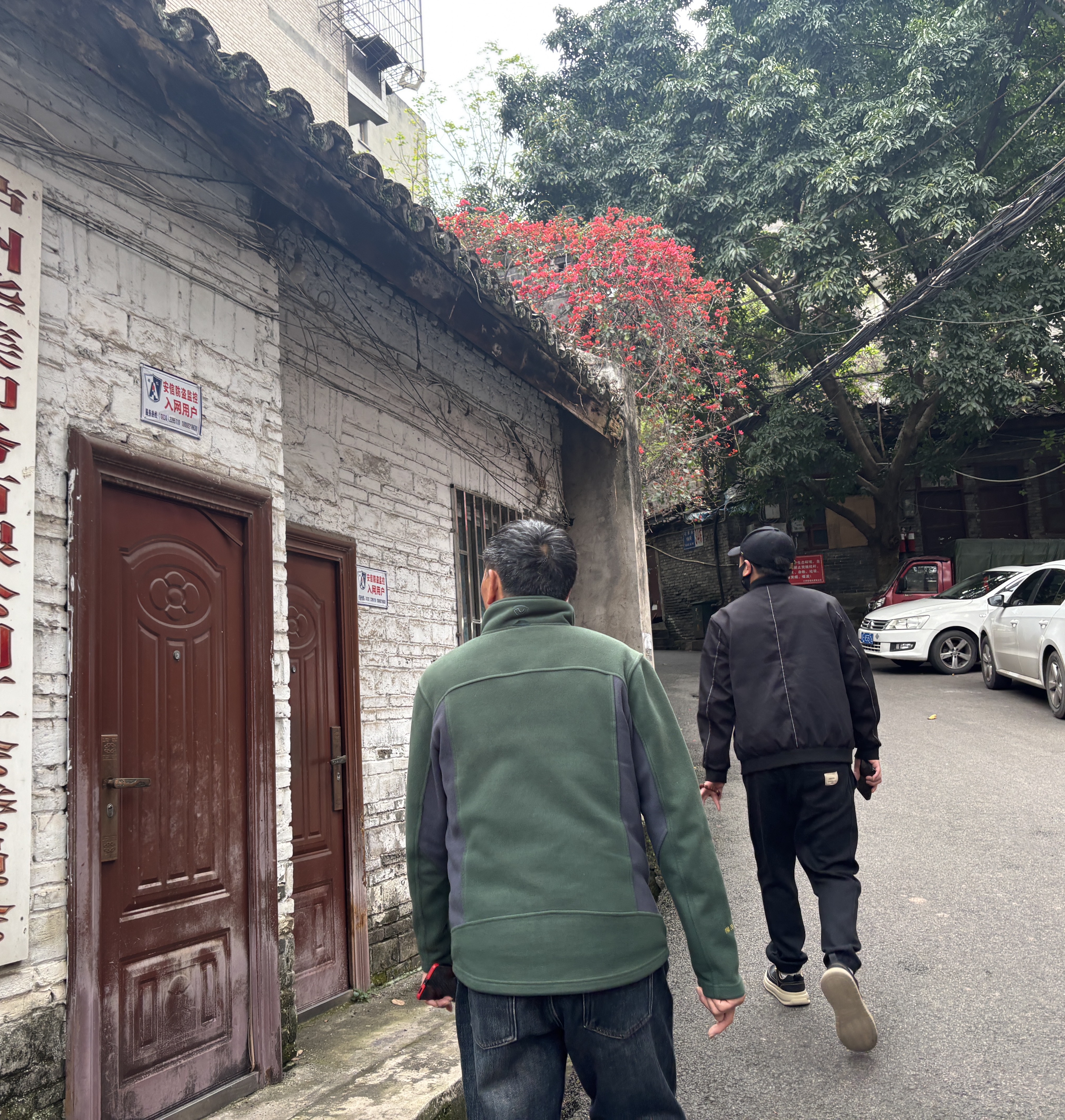 黄平(右)和爸爸到曾经租住的地方。新京报记者 左琳 摄