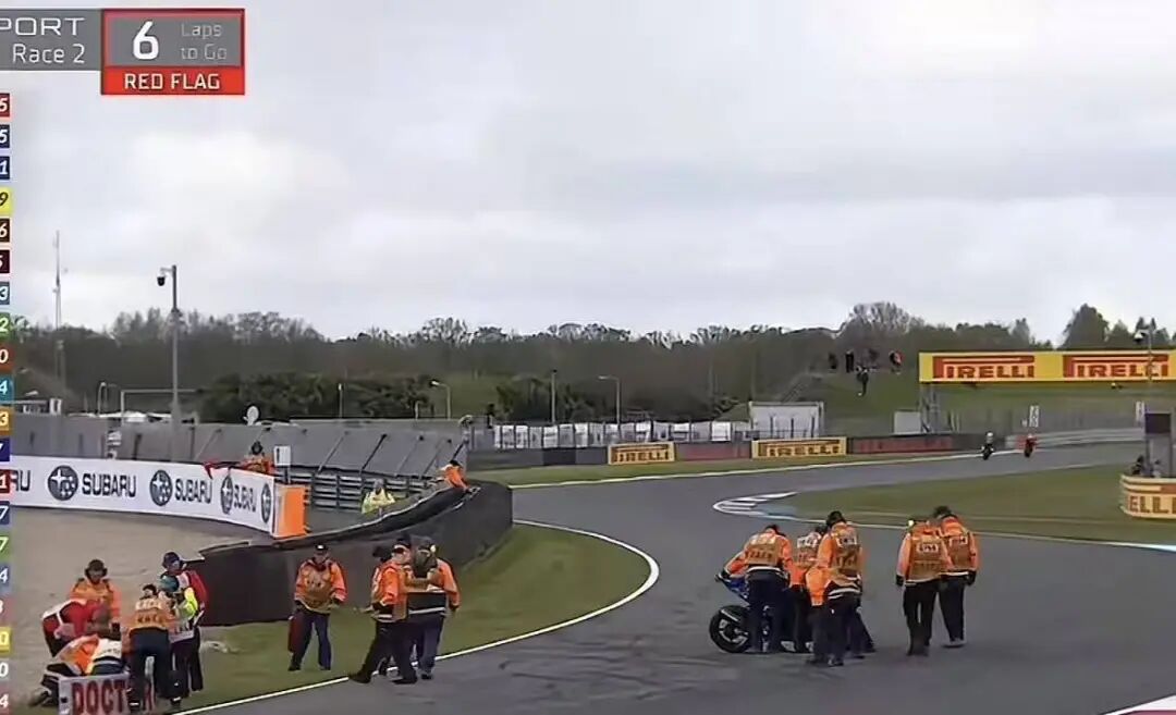 比赛进行到还剩6圈时,赛道出现事故,红旗出动中断比赛,按照规则由于已经完成总里程的2/3,因此比赛提前结束,所有车手成绩按照最后一个计时点结束时的排名计。