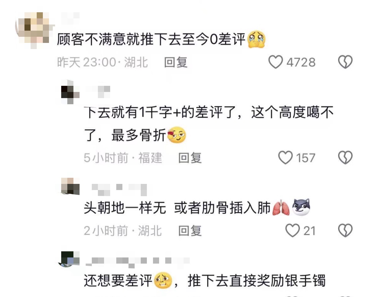 工作人员说,不建议轻易尝试这样的剪发方式,在露台上还是有一点点危险。顾客如果感兴趣,可以到店来和他们沟通,店方会专门设计其他的地点,选择一个适合的、能接受的,拍类似的视频。如果是剪发,费用大概在几百元。而普通的剪发,价格就是抖音团购价。记者查询该店剪发价格在19.9~98.8元,有创意设计师洗剪吹、首席或主理人洗剪吹等不同的价位。