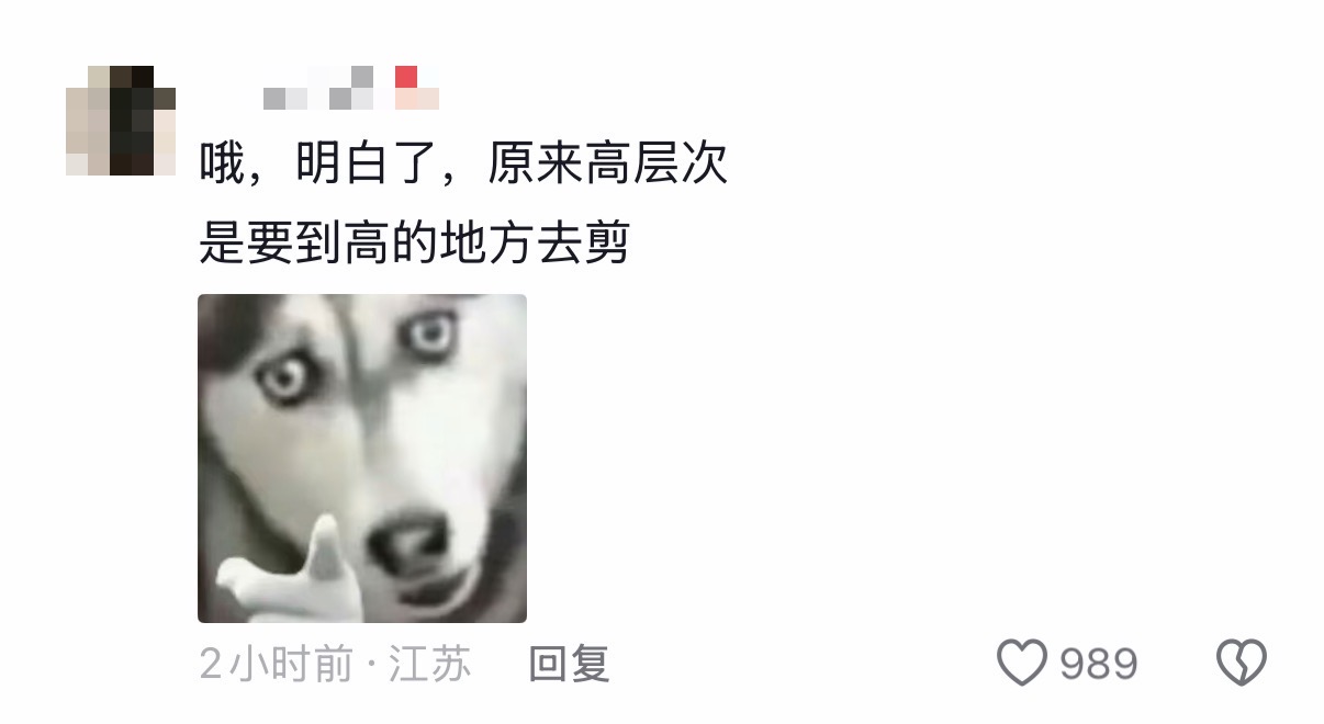 有网友表示明白了,原来剪高层次,是要到高的地方去剪。有网友说,画面太诡异,如果顾客不满意就推下去,至今是0差评吧。除了调侃外,还有网友担心在一层楼高的露台上剪发,发生安全问题怎么办?露台看着也没有围栏。
