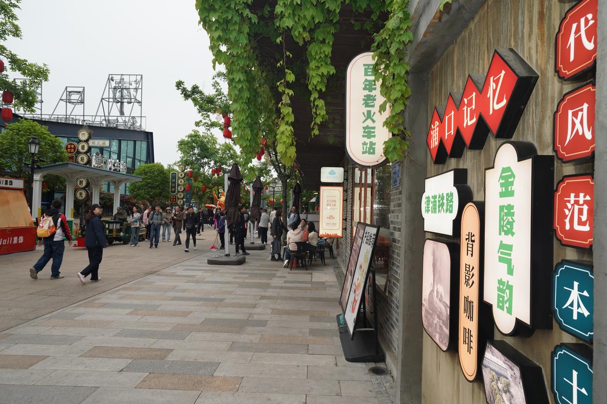 4月20日,游客在浦口火车站街区游玩。