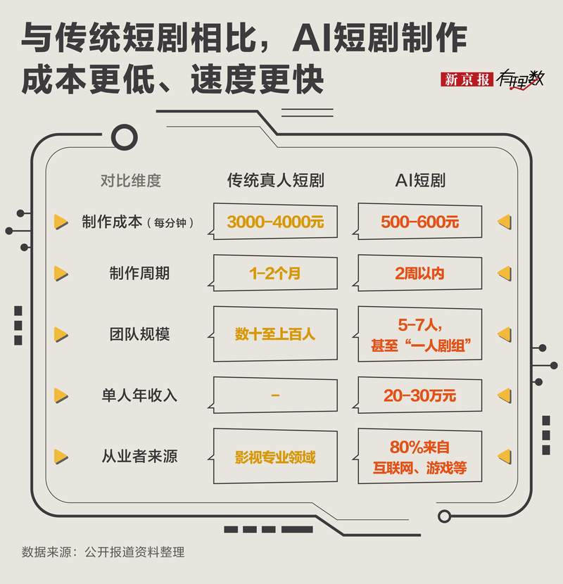 AI还彻底重构了创作团队:过去需要数十上百人协作,如今5—7人小工作室即可全包,甚至出现“一人剧组”——靠着“一台电脑、几款AI软件”,一人一年能挣二三十万元。