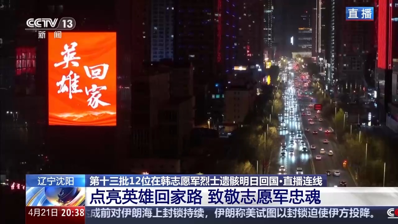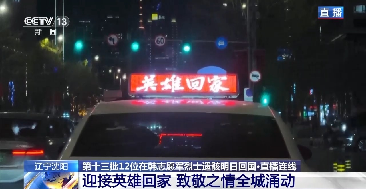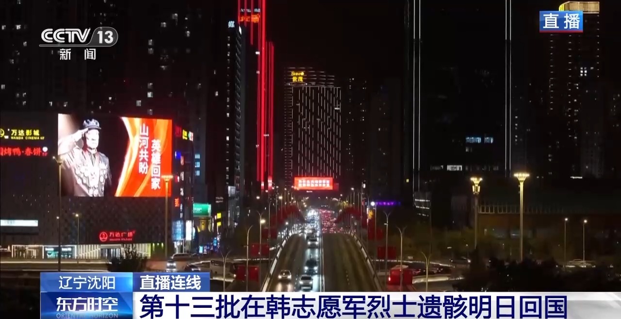 今夜沈阳,温暖明亮。一切准备就绪,所有目光都在期待。明天,第十三批在韩中国人民志愿军烈士遗骸将回到祖国怀抱。护送烈士遗骸的车队,将从沈阳桃仙国际机场出发,沿着青年大街一路向北,前往沈阳抗美援朝烈士陵园。从2014年到2025年,我国已累计迎回十二批共1011位在韩中国人民志愿军烈士遗骸。明天,当车队缓缓驶过被国旗与大屏点亮的街道,相信英烈们会看到:这片他们用生命守护的土地,如今已是山河无恙、烟火寻常。明天,让我们共同见证,英雄归来。