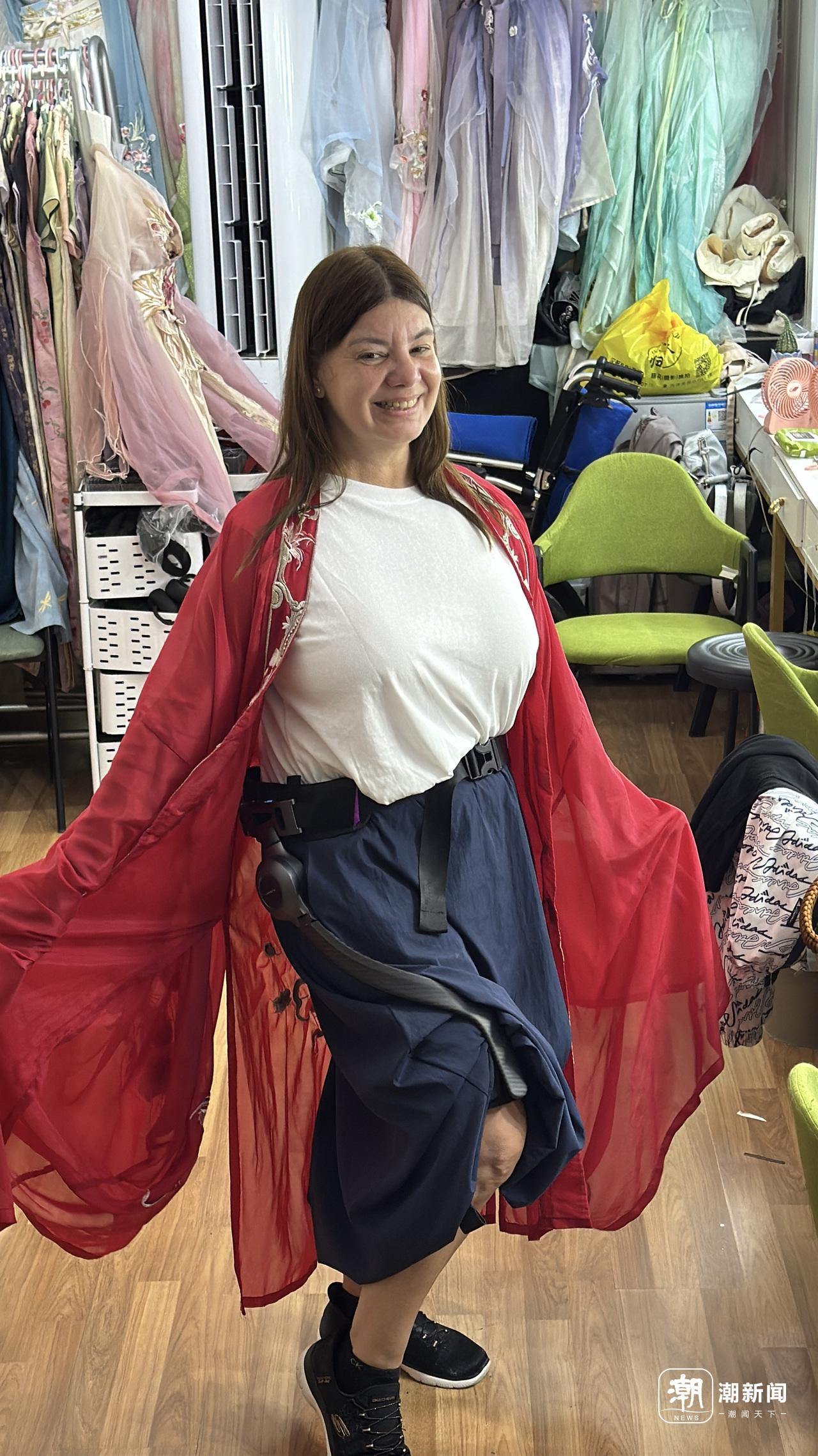 玛丽亚穿上外骨骼设备。潮新闻记者 摄