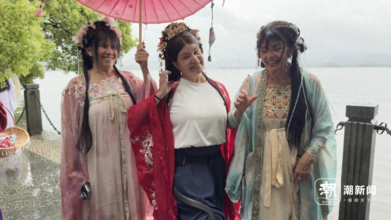 4月22日,杭州的雨一阵一阵地下,玛丽亚三人喜欢中国文化,又因为克拉拉的职业,想感受一次汉服妆造和阿根廷服饰的异同,于是都选了自己喜欢的汉服款式,做好自己喜欢的发型去逛西湖。