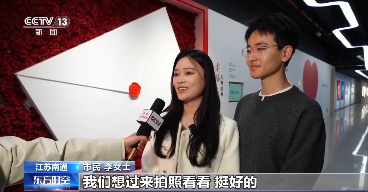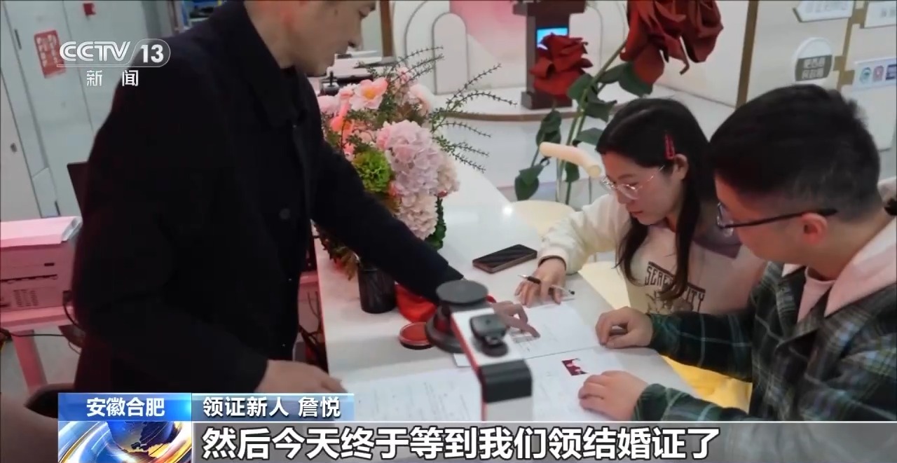 安徽财贸职业学院学生 汪欣妍:氛围特别好。尤其是去年5月20日的时候,很多人来登记结婚,看到他们幸福,我也觉得很幸福。