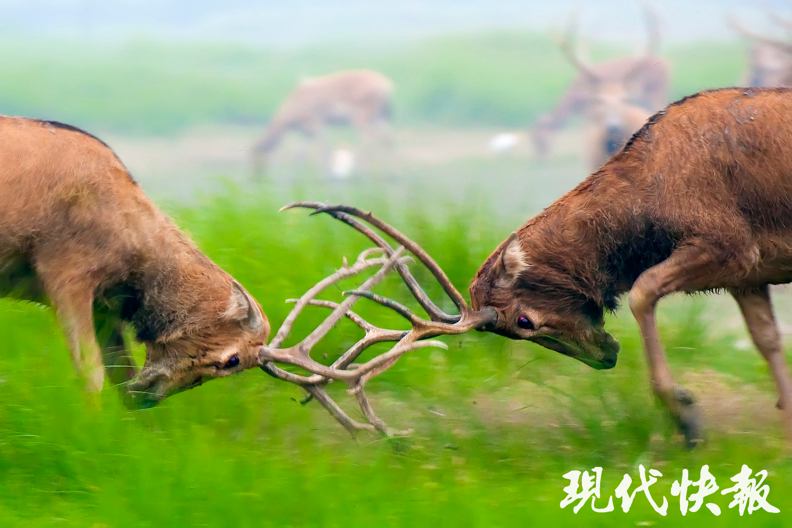 “初生的仔鹿落地15至20分钟就能站立行走,这是大自然赋予麋鹿的生存本能。初生的小麋鹿身上还布满梅花斑点,一个月内会自然消失。”大丰麋鹿保护区相关负责人介绍,6—8月份,是麋鹿的发情期。成年雄麋鹿为争夺配偶权,展开激烈角逐,上演火力全开的“鹿王争霸赛”。