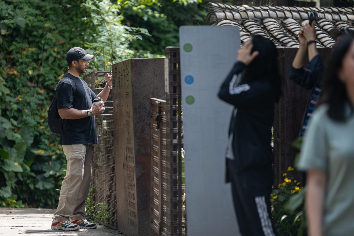 4月23日,外籍游客在重庆市南岸区下浩里老街观光游玩。新华社记者 黄伟 摄