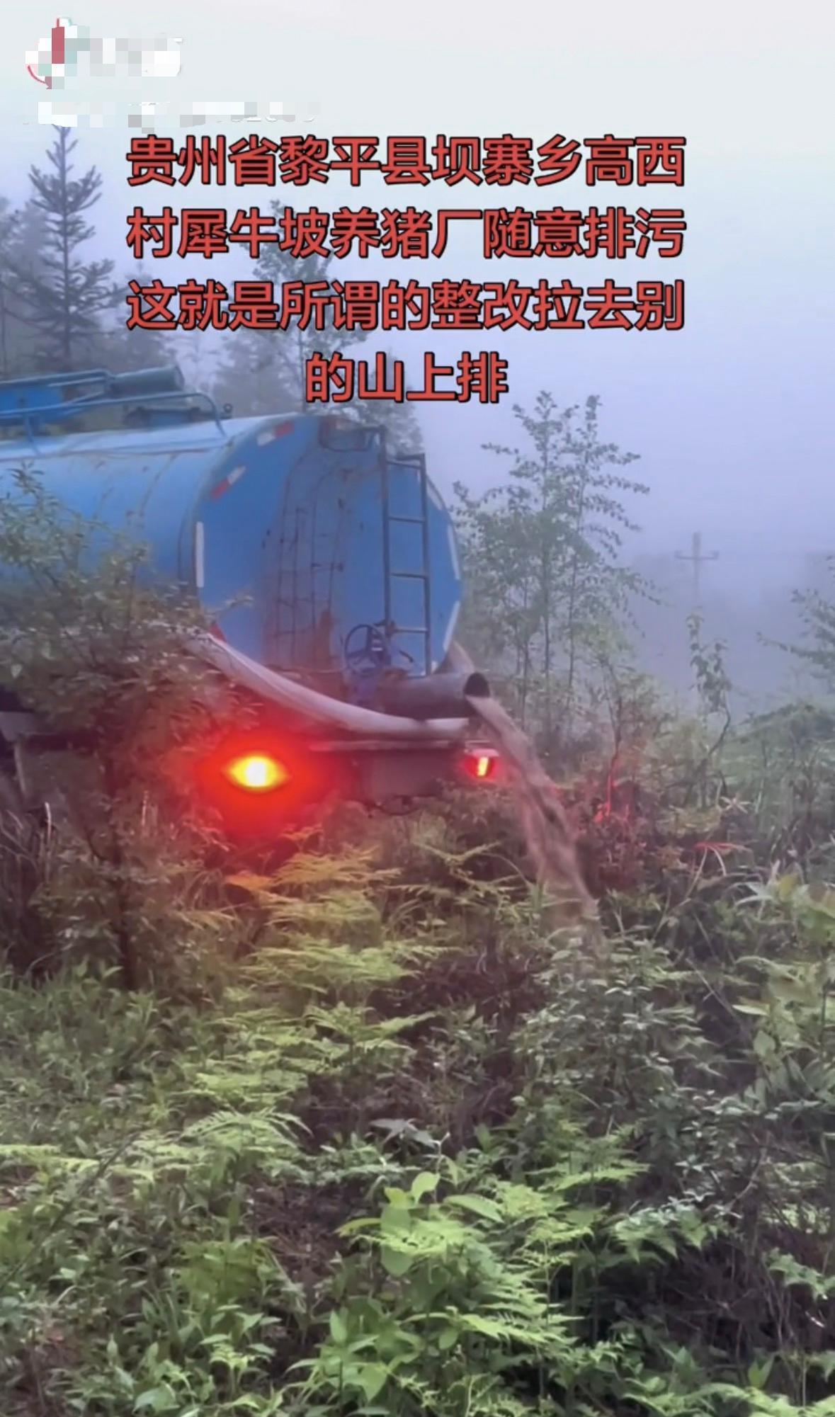 4月22日,又有网友发布视频质疑:该养猪场排污问题被整改后,又拉到别的山上排。视频显示,一辆吸粪车在山林中排出污水。23日,该视频发布者回应记者称,视频是在五日内拍摄的。