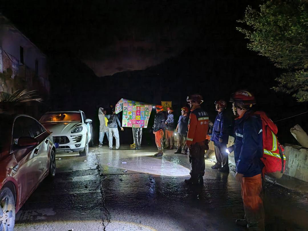 在接到救援指令后,由消防、应急、交通等部门组成的救援力量迅速抵达预设集结点,此处距离核心灾区直线距离约3公里。前沿勘察组通过强光手电对灾区进行抵近侦察,并通过电话与被困人员确认灾情后,发现道路多处被淤积物阻断,最深处超过1米,边坡仍有渗水,不时有拳头大小的碎石滚落。手机信号在部分区域断续,被困人员位置分散,具体人数不详。