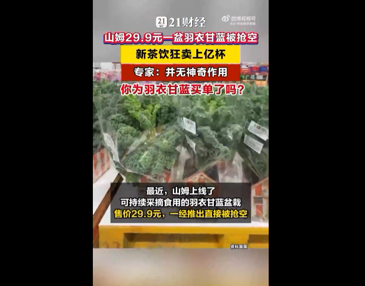 最近,山姆上线了可持续采摘食用的羽衣甘蓝盆栽,还喊出“种一次,吃一年”的诱人口号,售价29.9元,一经推出直接被抢空,火爆到离谱。有网友在社交平台说道,“一次就抱走七八盆。”没抢到的网友更急,在评论区疯狂刷屏求代购。