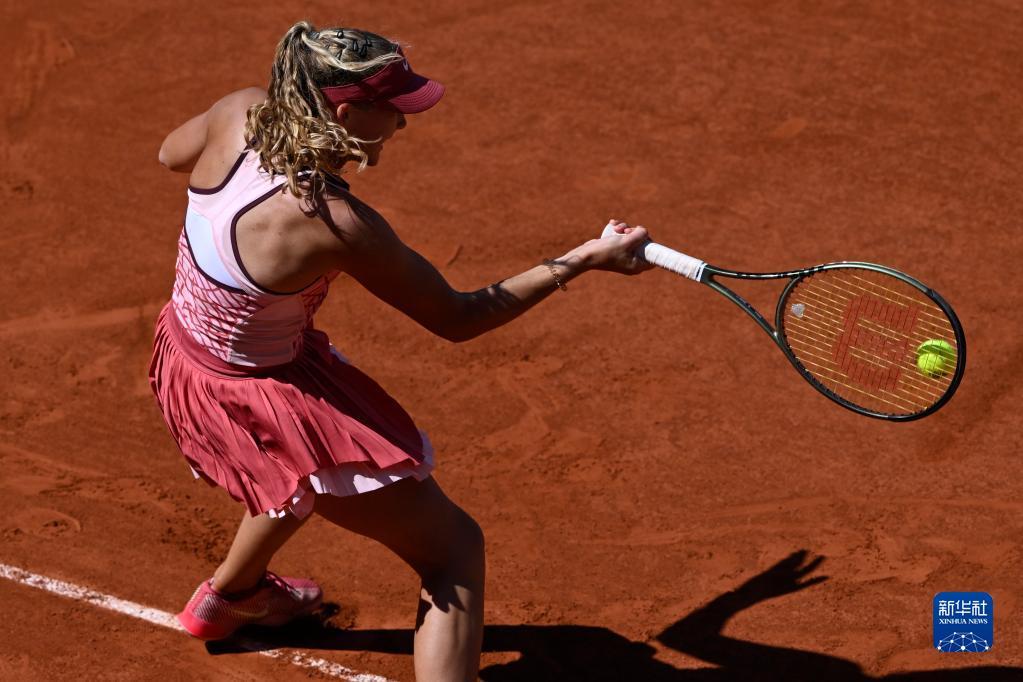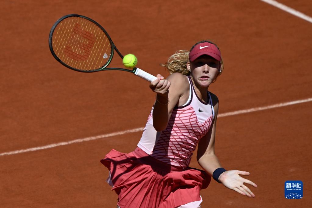 6月3日,安德烈耶娃在比赛中回球。