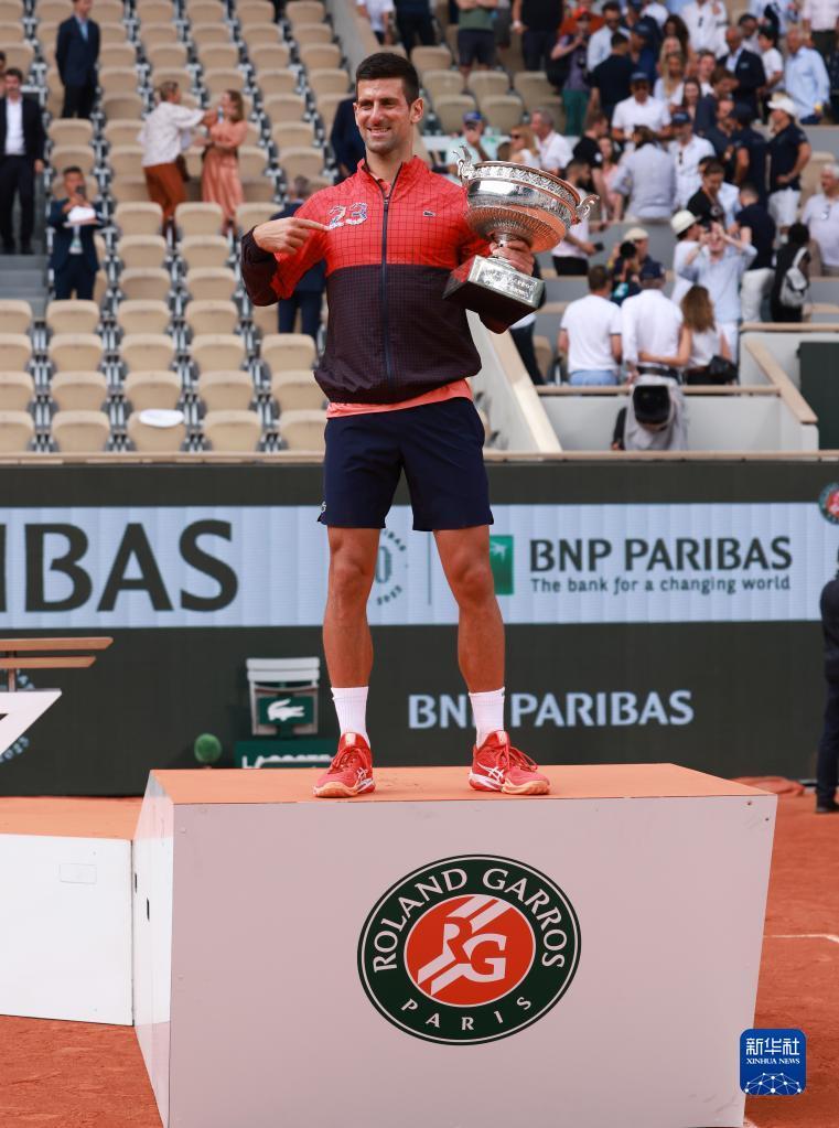 当日,在2023年法国网球公开赛男单决赛中,塞尔维亚选手焦科维奇以3比0击败挪威选手鲁德,拿下个人职业生涯第23个大满贯单打冠军头衔,成为获得大满贯单打冠军次数最多的男子选手。