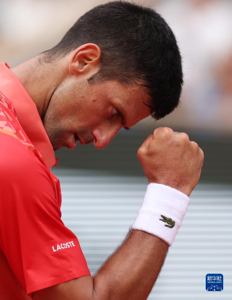 6月11日,焦科维奇庆祝胜利。新华社记者高静摄