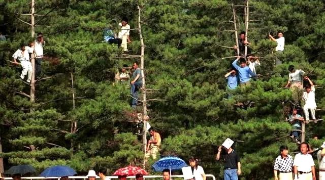 买不到票的球迷甚至爬到场外的树上看球
