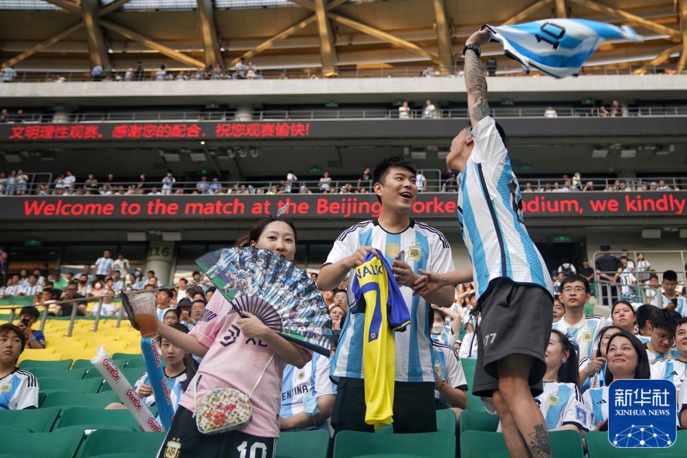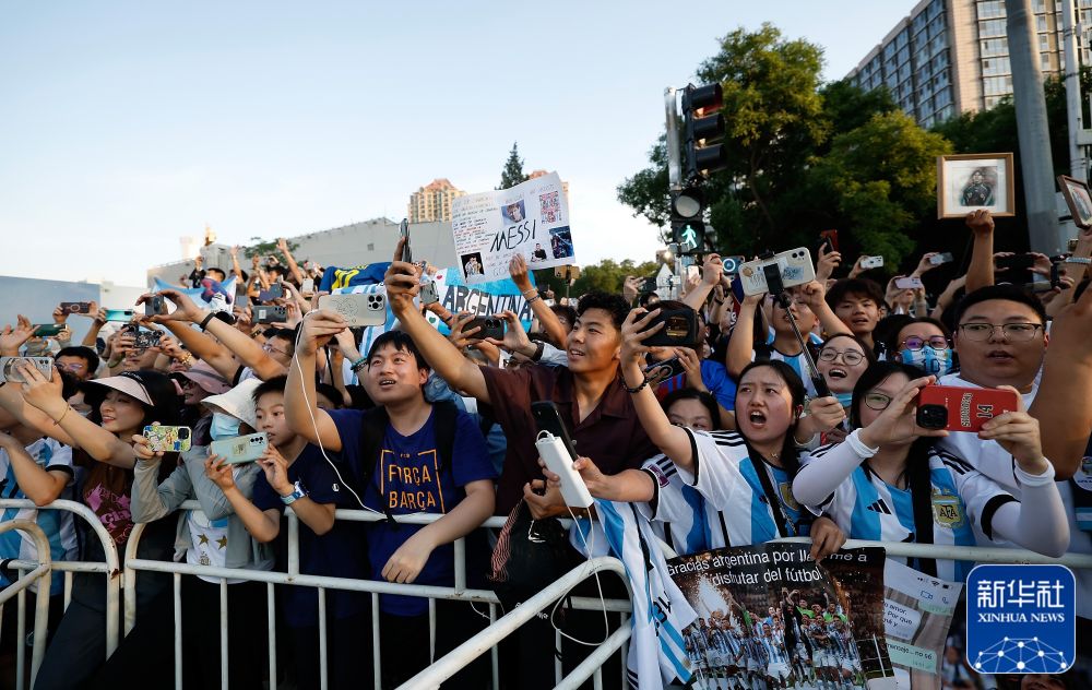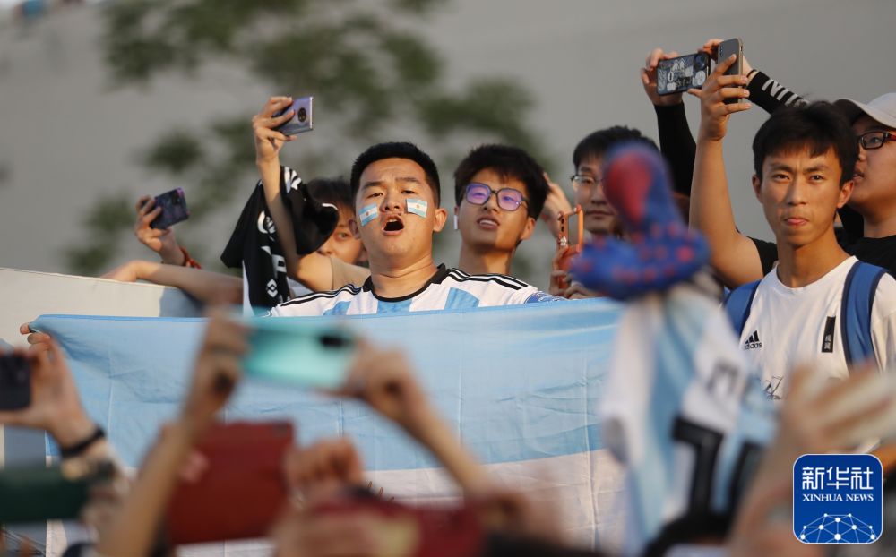 ⬆️6月14日,球迷在阿根廷队大巴抵达北京工人体育场时欢呼。当日,阿根廷队在北京工人体育场进行赛前训练。新华社记者张晨摄