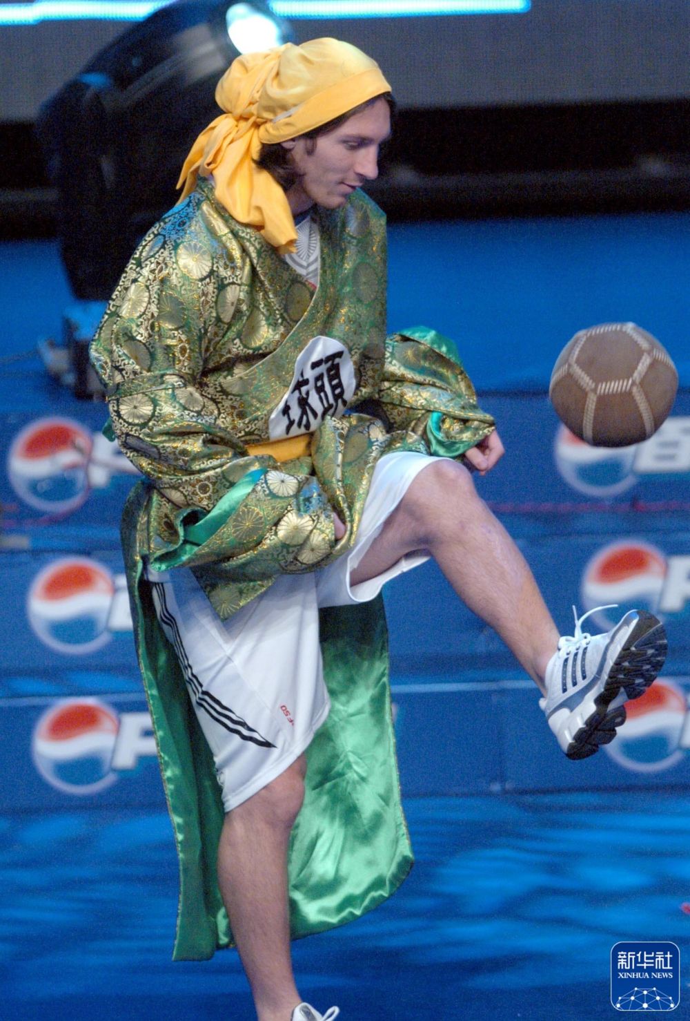 ⬆️2007年7月22日,阿根廷球星梅西在山东济南举行的一项活动现场体验蹴鞠。新华社发(张侃)摄