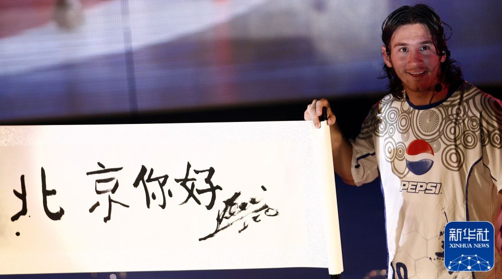 ⬆️2007年7月21日,阿根廷球星梅西在“百事新球王梅西中国行”活动现场展示自己书写的汉字“北京你好”。新华社记者廖宇杰摄