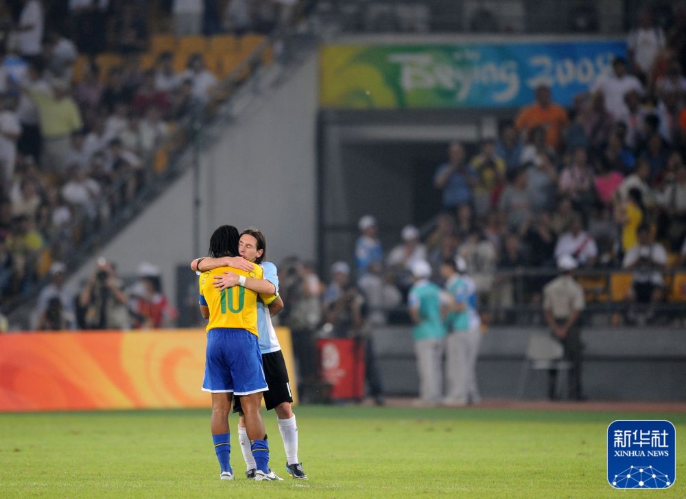 ⬆️2008年8月19日,阿根廷队球员梅西(右)在北京奥运男足半决赛后安慰巴西队球员罗纳尔迪尼奥。新华社记者李钢 摄