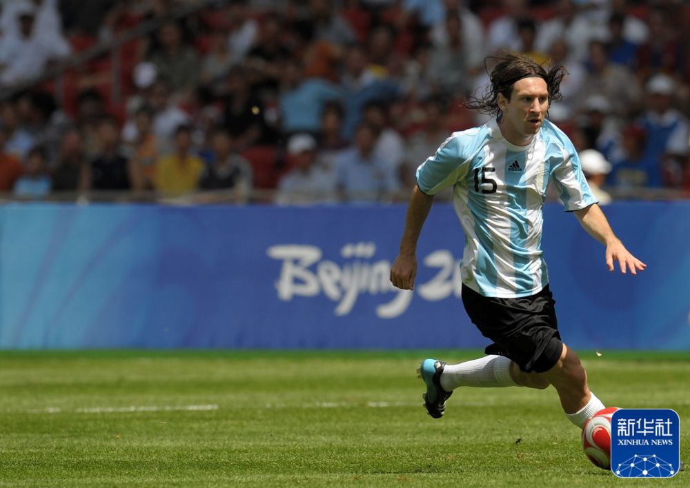 ⬆️2008年8月23日,阿根廷队球员梅西在北京“鸟巢”举行的北京奥运会男足决赛中控球。新华社记者刘大伟摄
