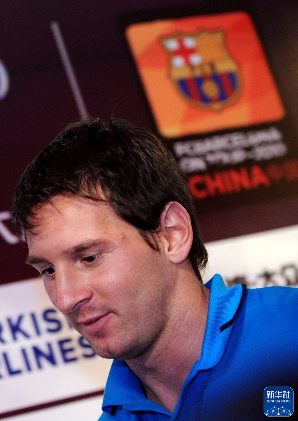 ⬆️2010年8月5日,巴塞罗那队球员梅西在新闻发布会上。当日,西班牙巴萨罗那队在北京举行2010巴萨中国行新闻发布会。新华社记者公磊摄