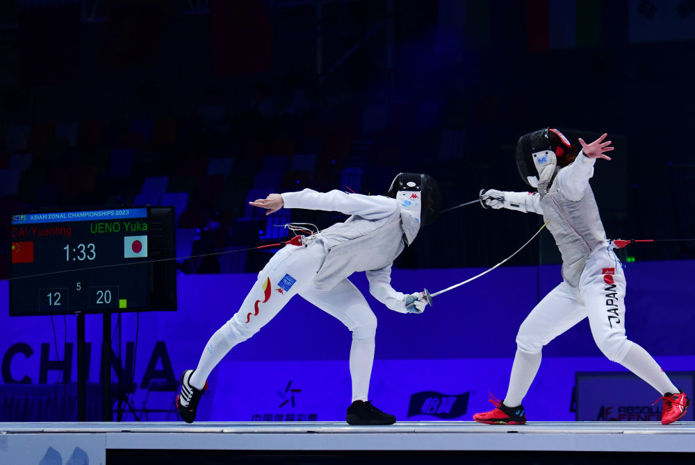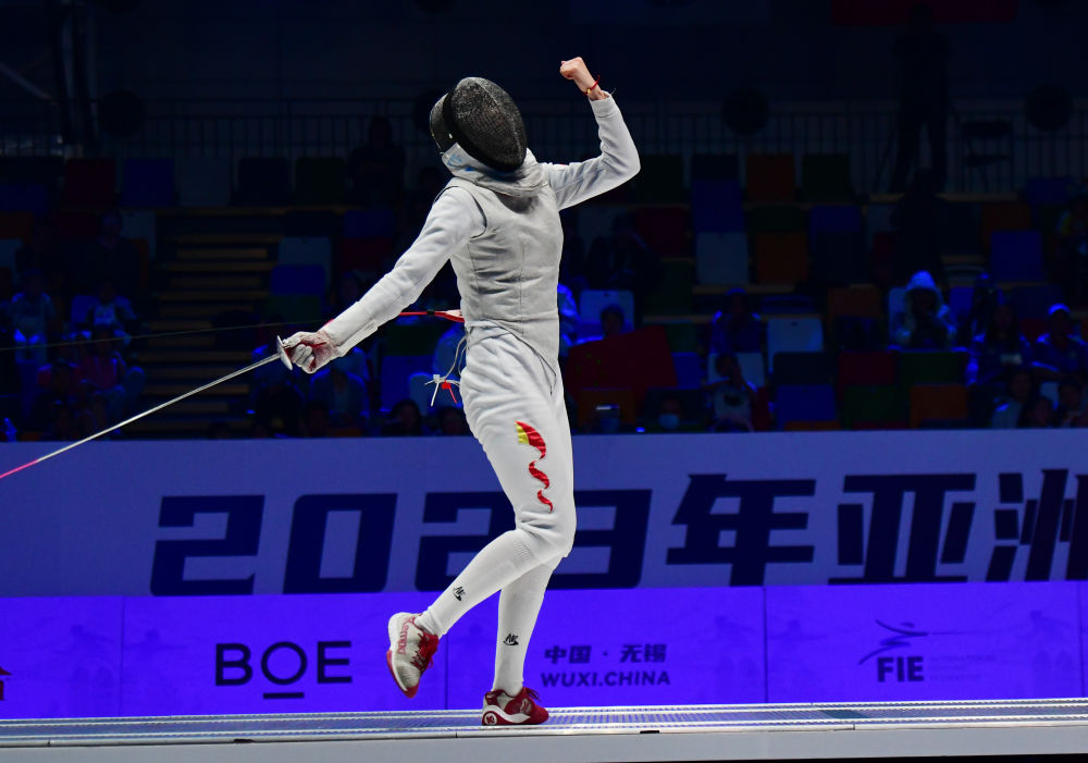 6月18日,在江苏无锡举行的2023年亚洲击剑锦标赛女子花剑决赛中,陈情缘以15:12击败日本选手东晟良,夺得冠军。新华社发(还月亮摄)