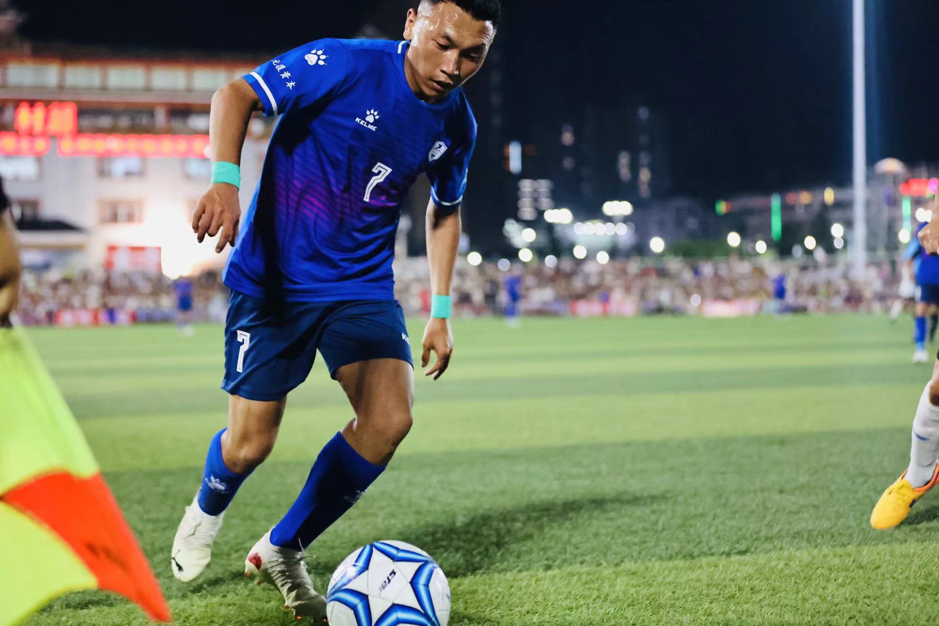 才文索南曾是一名职业球员,在哈尔滨度过了五年职业生涯,这次参加“村超”是他第一次代表家乡到省外参赛。“在这个难忘的夜晚,我一次次感受着足球带来的美好。”