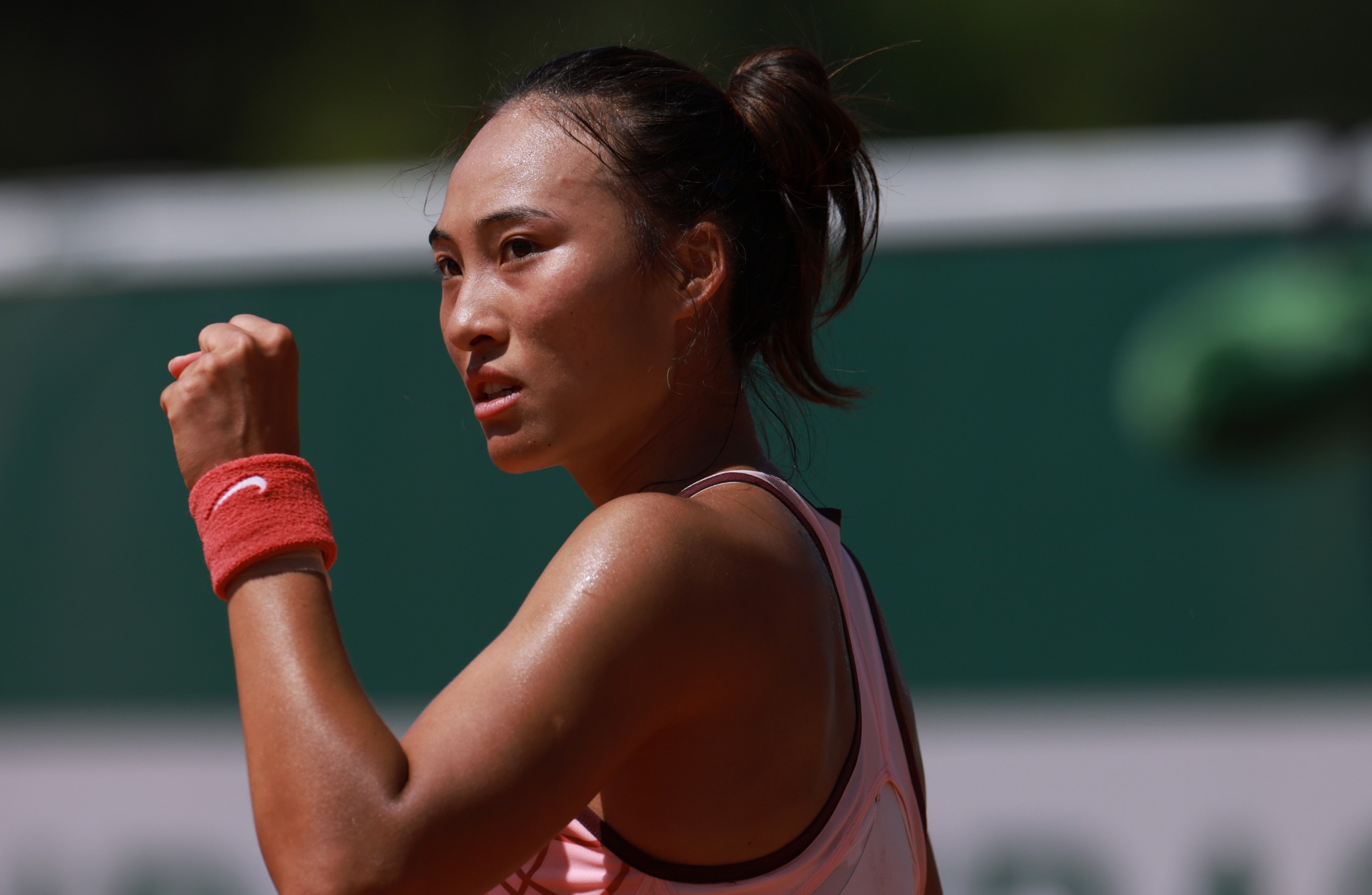 5月31日,郑钦文在法网比赛中。新华社记者高静摄