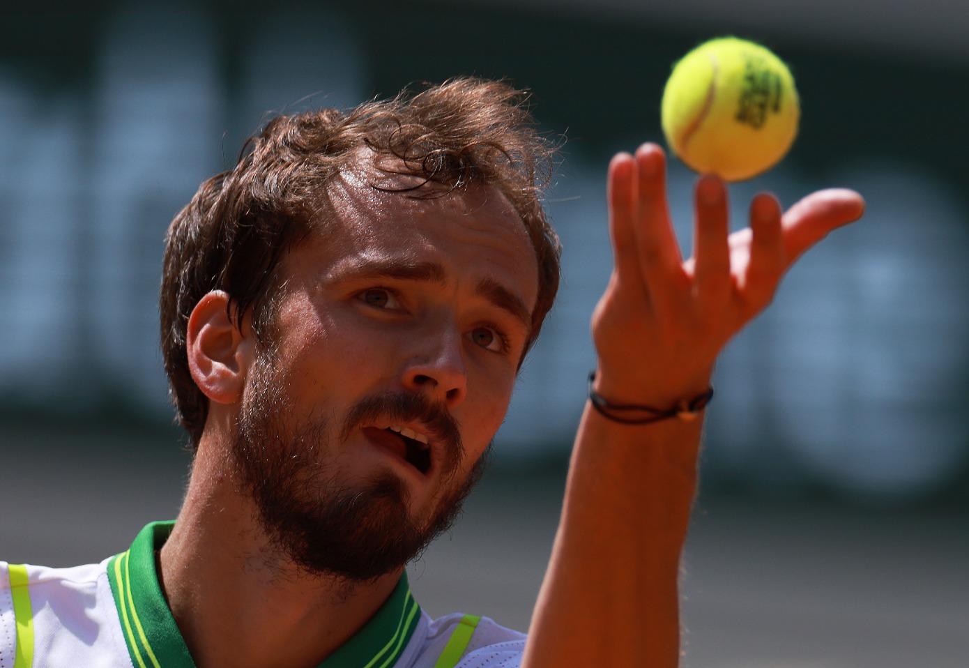 5月30日,梅德韦杰夫在比赛中发球。新华社记者高静摄