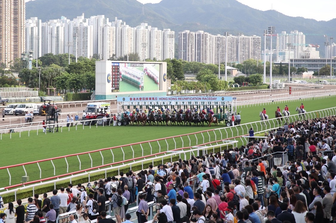 为庆祝香港特别行政区成立二十六周年,香港赛马会于7月1日在沙田马场举办“香港共庆回归赛马日”活动,吸引逾两万名观众现场观赛,共同见证香港“马照跑”的盛况。