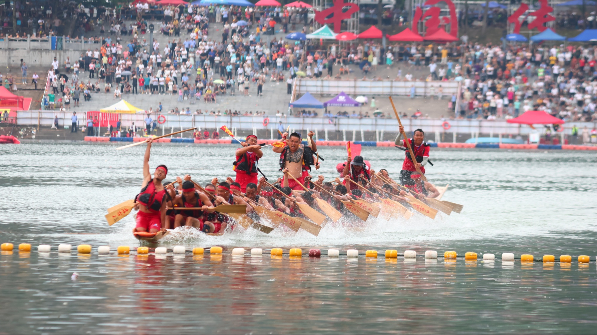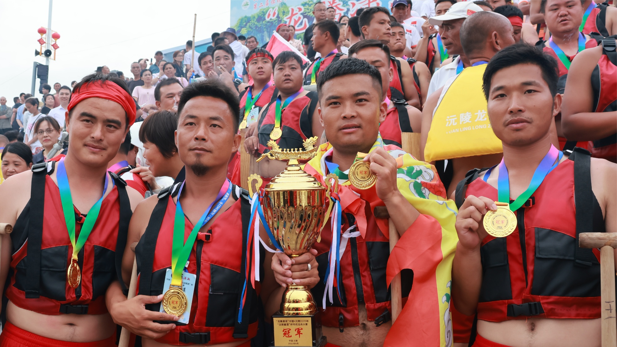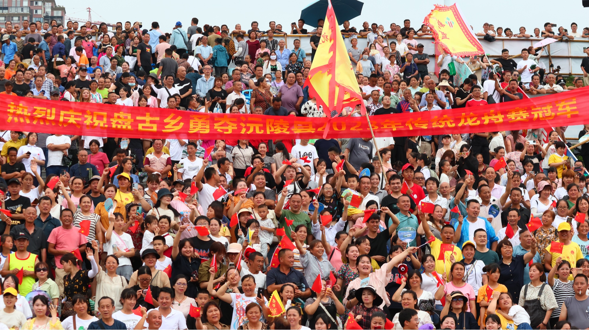 6月30日下午,随着最后一只队伍冲过终点,“龙腾潇湘”中国·沅陵2023年“沅陵酱酒”杯传统龙舟大赛在完成为期3天的赛程后,各龙舟队偃旗息鼓,大赛落下帷幕。