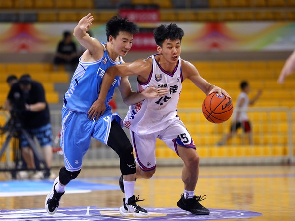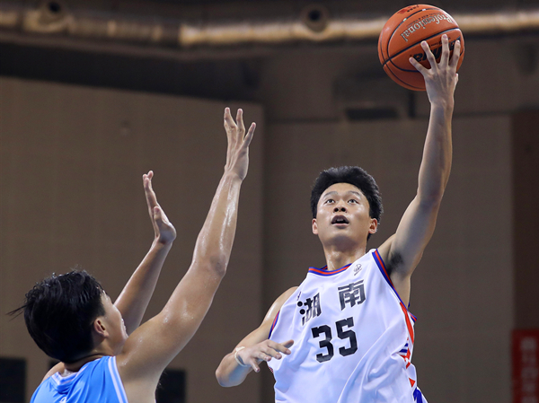 湖南队球员段钰炜(右)带球突破。图/新华网