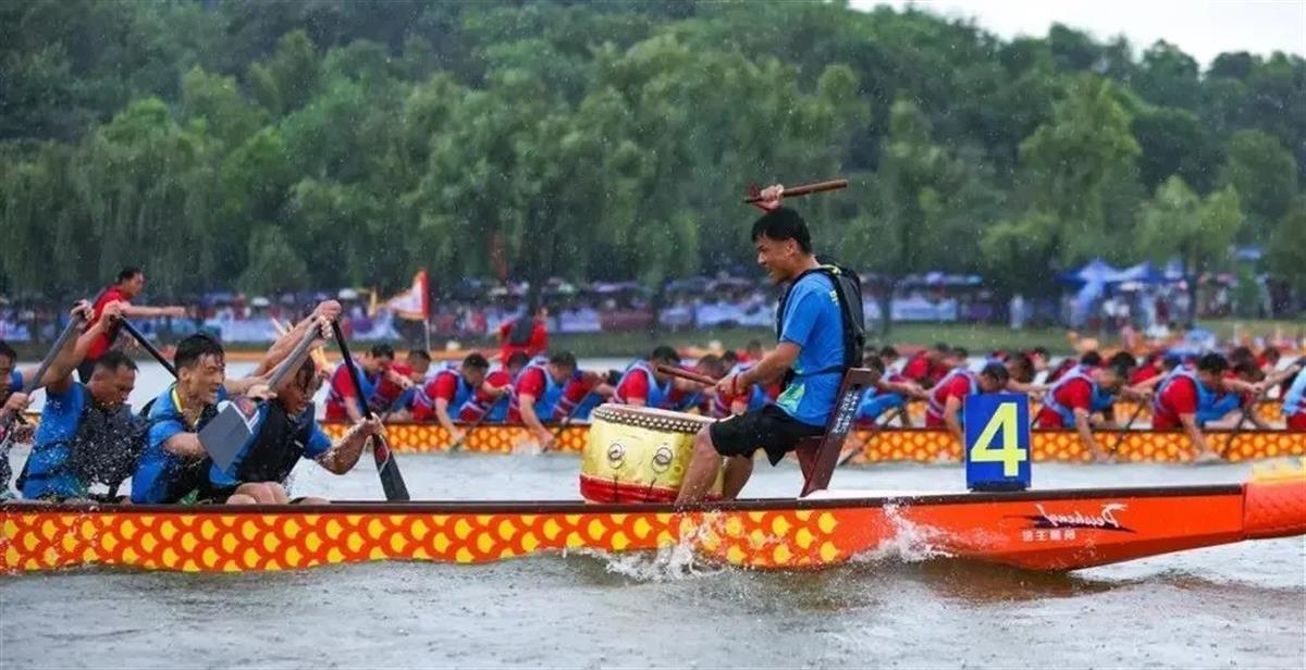 7月9日,为期两天的2023年湖北省龙舟公开赛(黄石阳新站)在阳新县莲花湖国家湿地公园圆满收官,来自武汉、黄石、仙桃、宜昌、襄阳、洪湖、咸宁等地的高等院校及社会团体共33支龙舟队参加比赛。