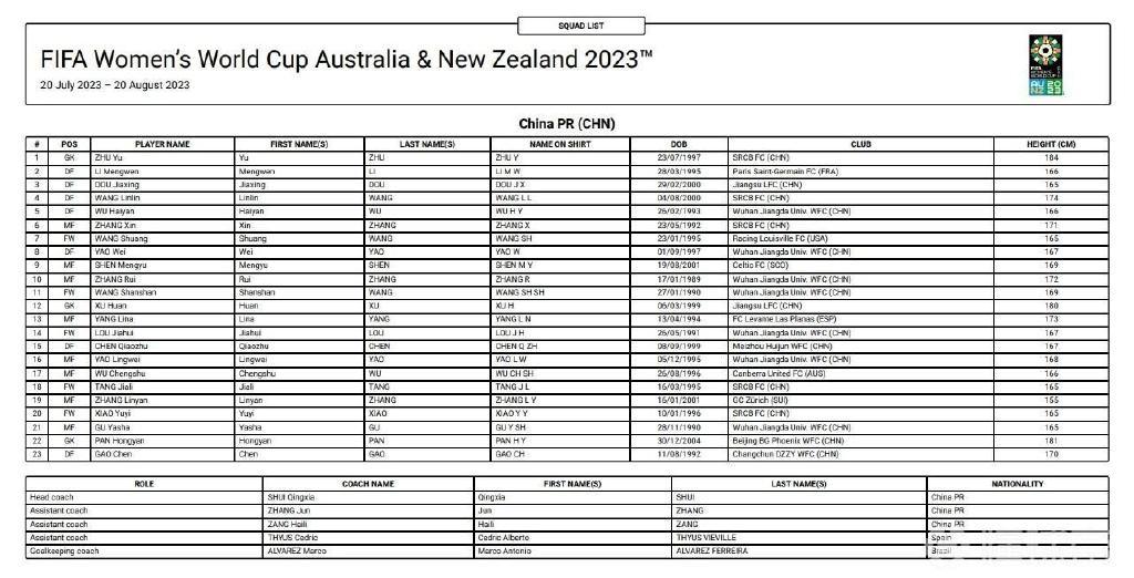 7月11日,中国女足公布征战世界杯球员球衣号码,王霜将身披7号球衣,王珊珊身穿11号,张琳艳19号。