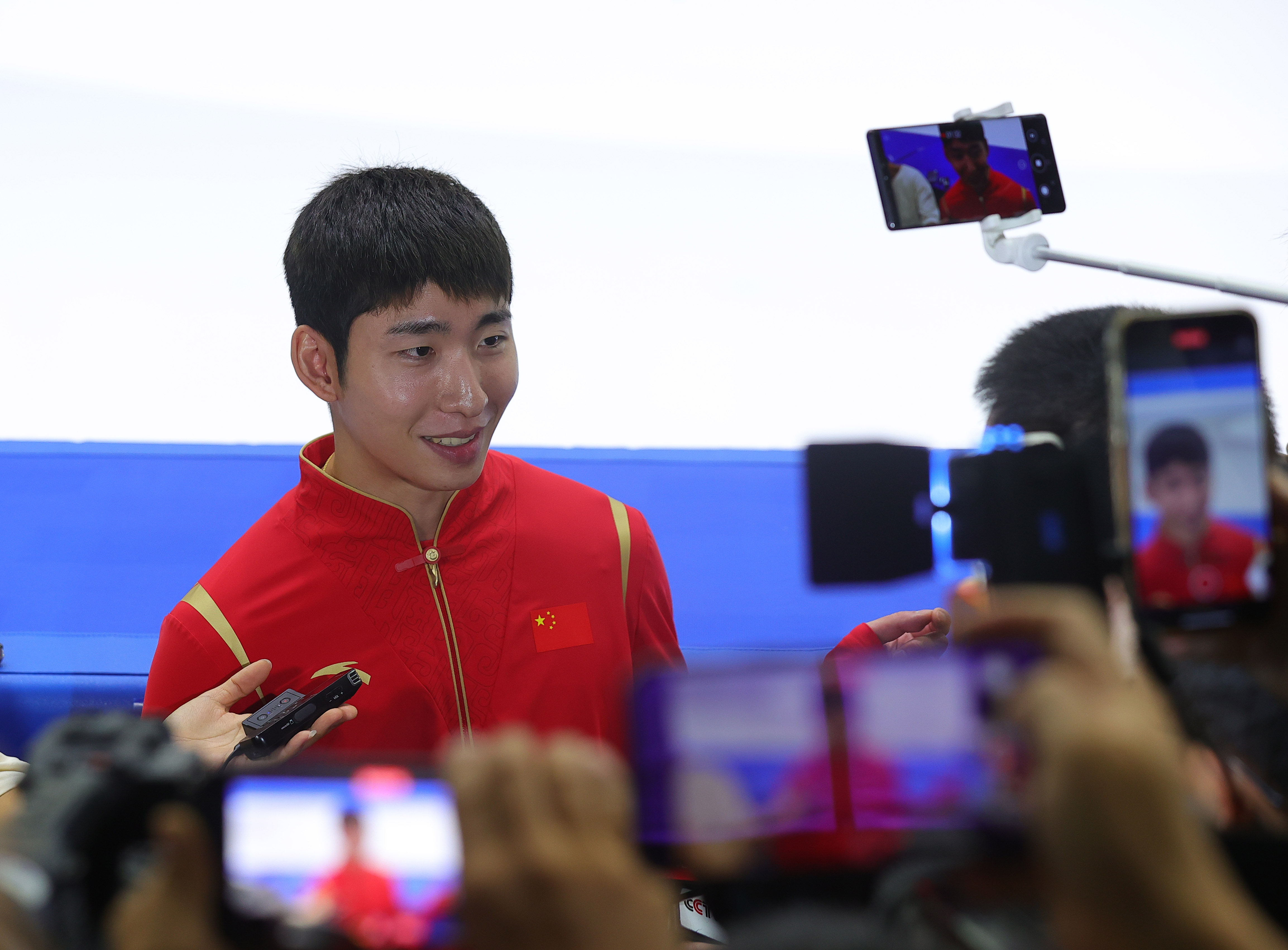 7月11日,训练营运动员林孝埈接受采访。新华社记者丁旭摄