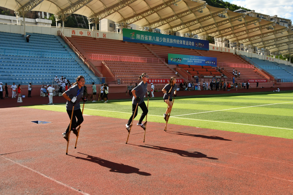新华社西安7月16日电(记者姚友明、赵英博)宝塔山下,来自西安交通大学的回族学生吴佳雪正和队友们一起,为即将打响的陕西省第八届少数民族传统体育运动会高脚竞速比赛做最后的准备。
