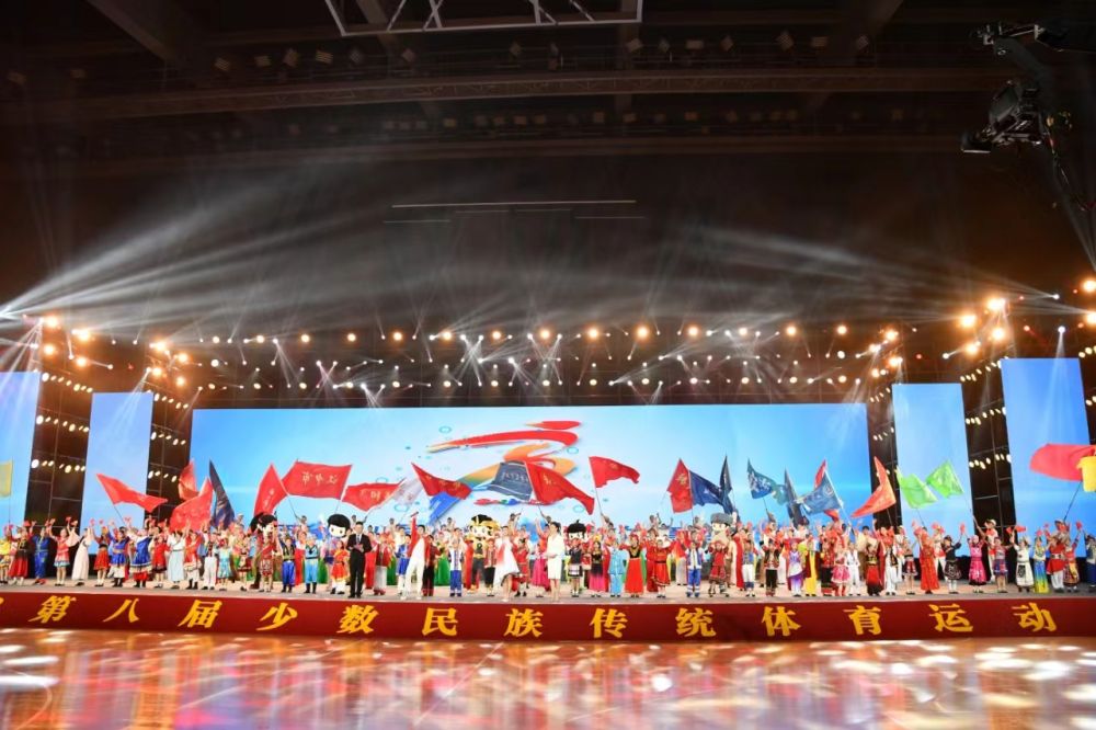 图为陕西省第八届少数民族传统体育运动会开幕式