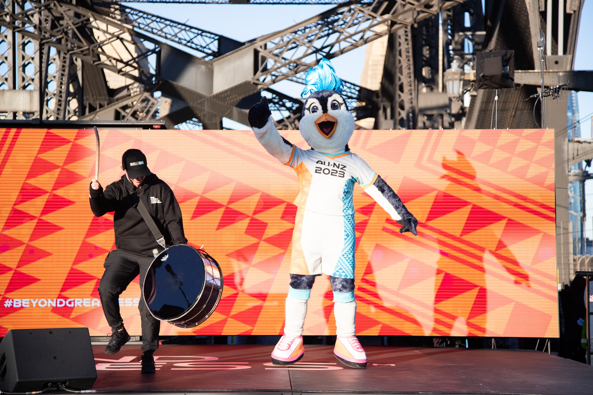 6月25日,女足世界杯倒计时25天庆祝盛典在悉尼海港大桥举行。这是当天的文化表演。胡泾辰摄