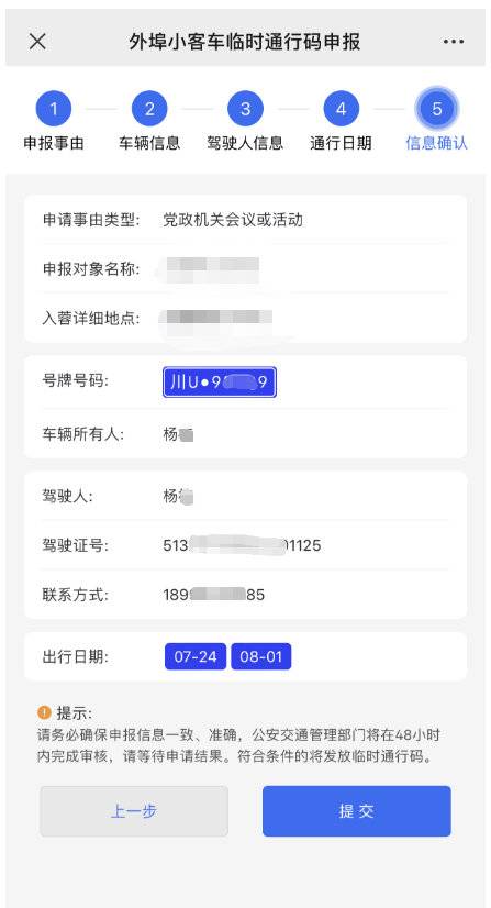 5.告知结果:外埠小客车驾驶人填写完成申请后,系统将在48小时内发送核准结果短信,请保证登记的手机号真实有效;