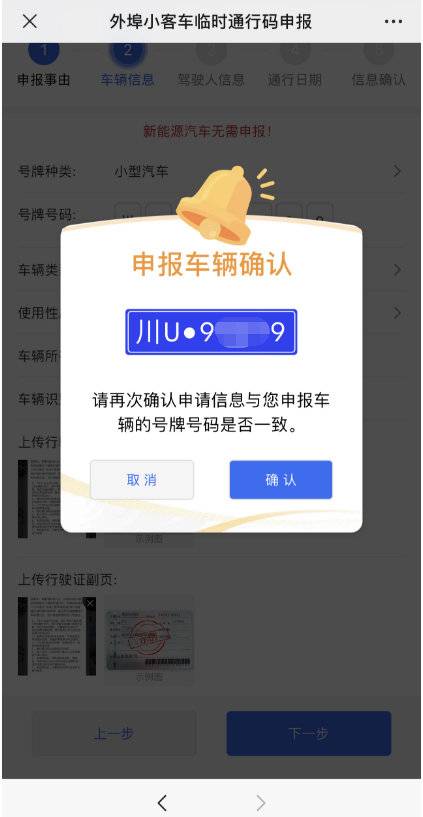 2.填报信息:进入“成都大运会期间交通出行便民服务”界面,点击“外埠小客车临时通行码”,填写申请人(单位)信息、联系电话、申办车辆、驾驶人等相关基本信息,同步上传申办材料。每人仅可一次性申请一辆本人实际驾驶的外埠小客车。请保证申报材科真实有效,不符合规定将承担相关后果,虚假申报将停止申办“外埠小客车临时通行码”资格。