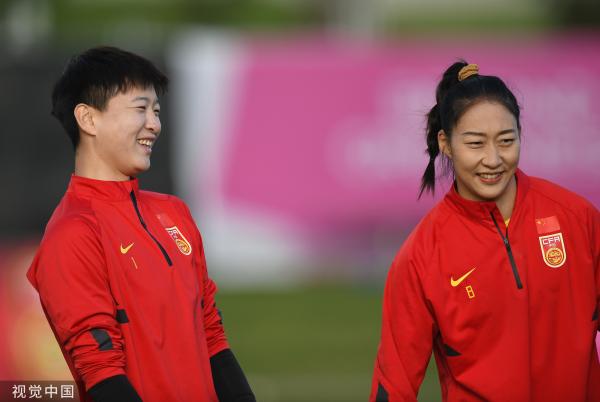 下午三点半,中国女足的大巴准时出现。队员们有说有笑走下车,气氛轻松。