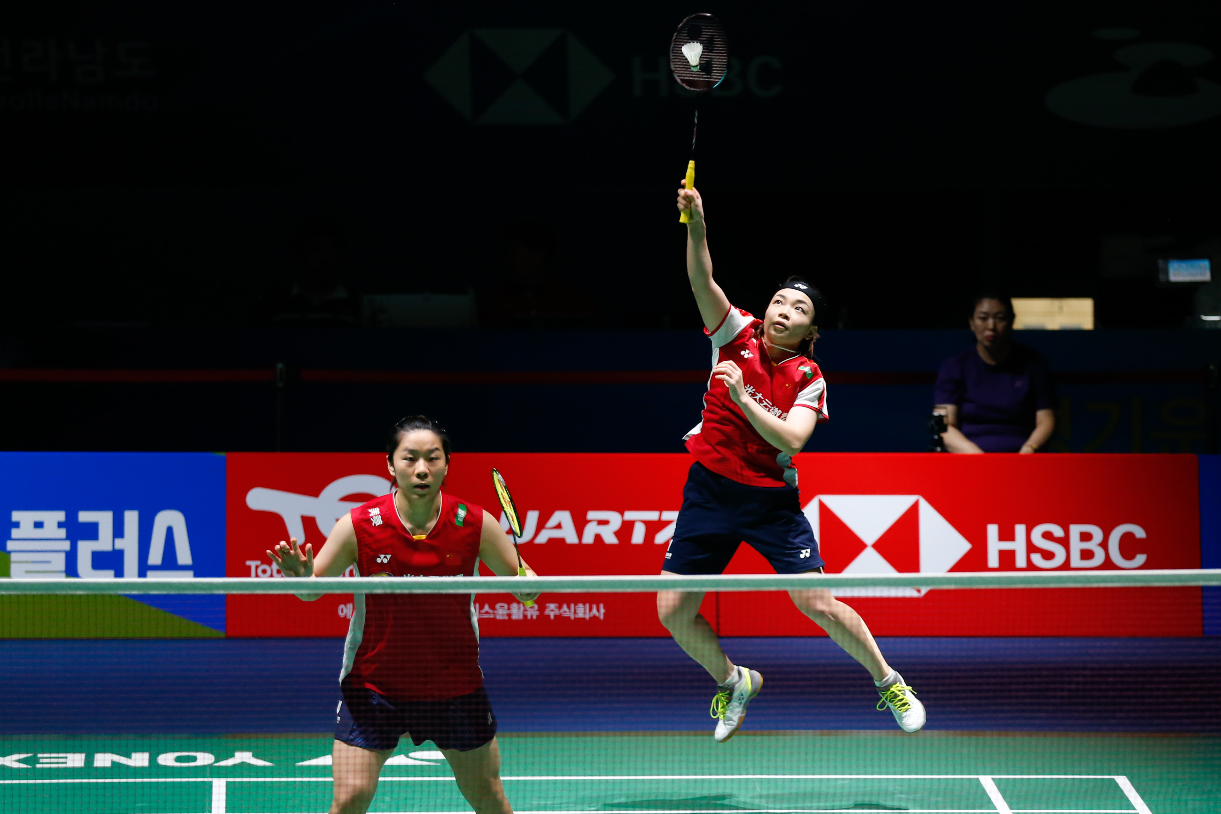 当天出战的三对国羽女双组合均战胜各自对手。李汶妹/刘玄炫在与日本组合福岛由纪/广田彩花的比赛中多次挽救赛点,以10:21、24:22、26:24逆转取胜。赛后刘玄炫表示,两人在比赛关键时刻都顶住了,相信彼此、相信教练布置的战术,从而拿下了关键分。