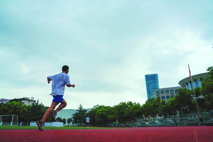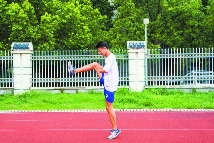 7月19日下午5点,在安徽建筑大学北校区的操场上,一位皮肤黝黑、身形健硕的小伙正在进行高抬腿练习,一起一落间,身上的汗水浸湿了白色上衣,豆粒大的汗珠从脸颊滑落,随着夏日蒸腾的热气融化在塑胶跑道上,成为他刻苦训练的痕迹。