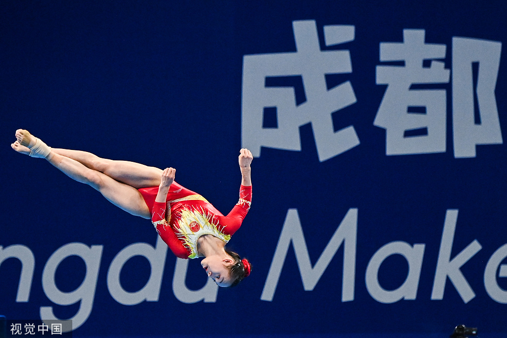 继前一天中国男队拿下团体冠军,由欧钰珊、罗欢、章瑾、杜思雨、韦筱圆组成的中国女队当天以163.029分获得团体冠军。