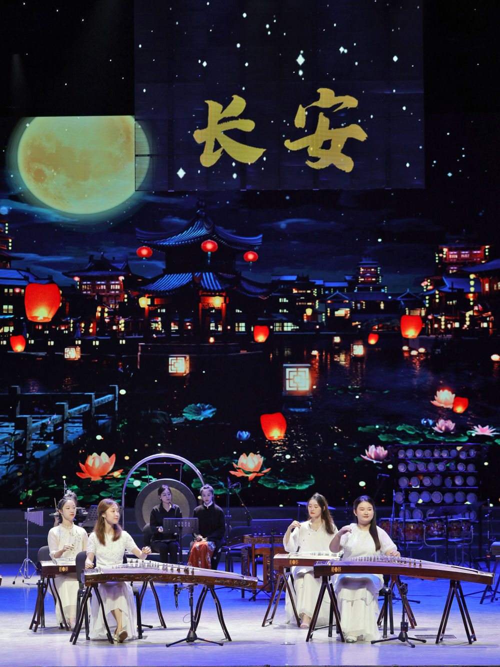 一曲《长安社火》拉开了当晚表演的序幕,背景大屏上长安城的繁华气象与屏幕外古筝的演奏相得益彰。