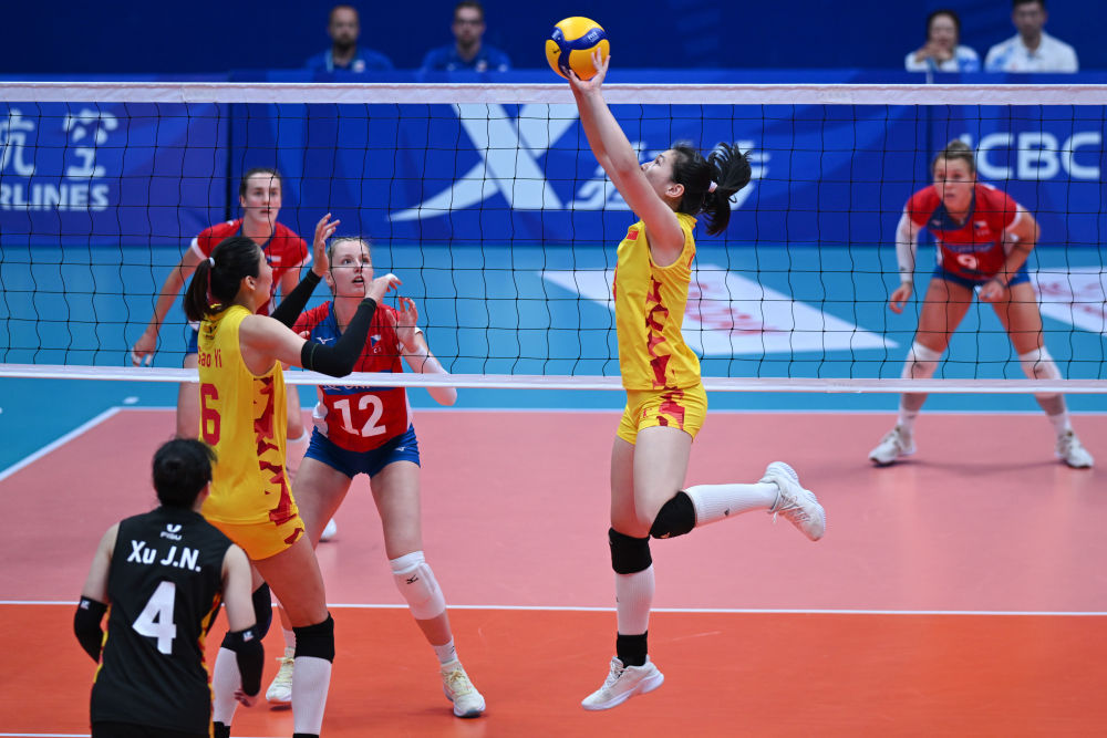当天的三局比分是25比17、25比16和25比16。在拦网得分方面,中国队以12比3占据压倒性的优势,而捷克队全场失误送分达到26分。