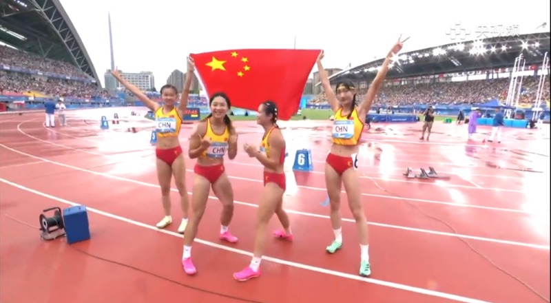 大皖新闻讯8月6日晚,成都大运会田径项目展开最后一个比赛日角逐。在女子4×100米接力决赛中,安徽“小飞人”李玉婷和梁小静、葛曼棋、蔡燕婷组成的中国队,自起跑之后便一路领先,最终跑出了43秒70的优异成绩,以绝对优势获得金牌,同时还刷新了PB(最好成绩)。